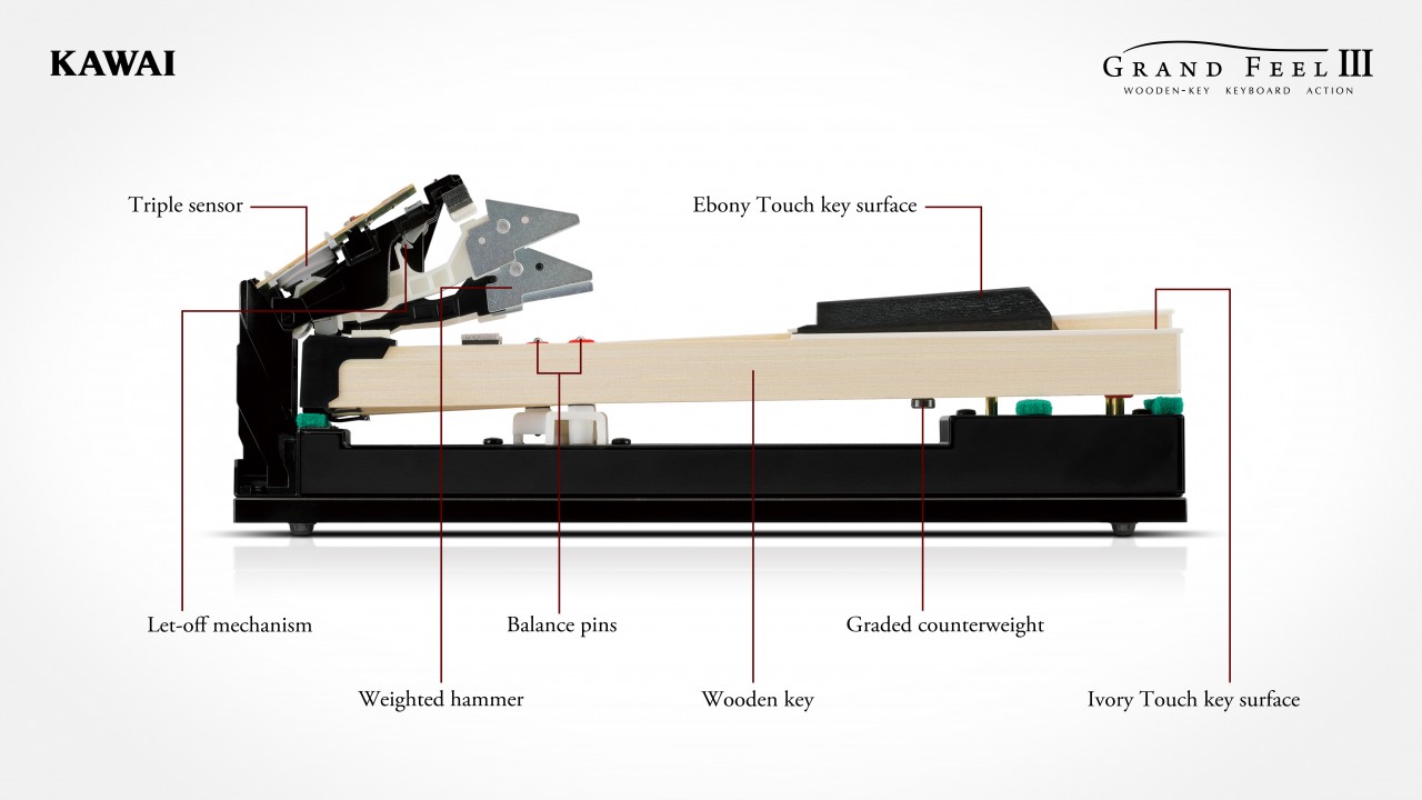- 88 Holztasten mit Grand Feel III- Holztastatur, Druckpunktsimulation und Ivory und Ebony Touchoberfläche, 3-fach Sensor und einzeln gewichteten Tasten