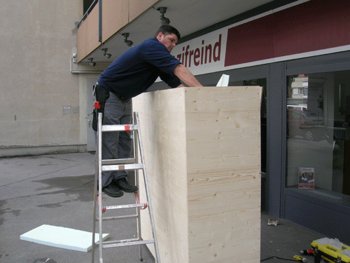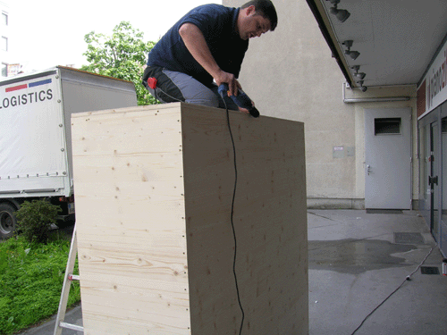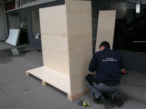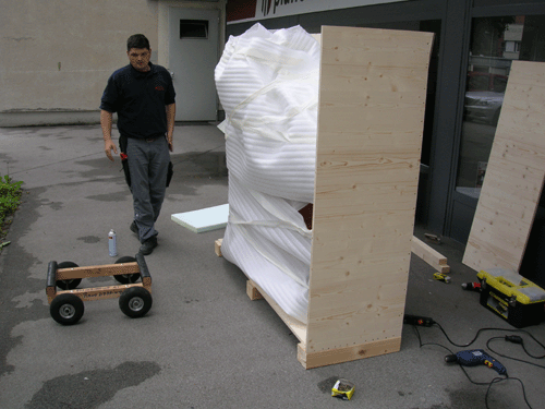 Zusammenbau der Seefrachtkiste durch die Fa. Global Trans Innsbruck