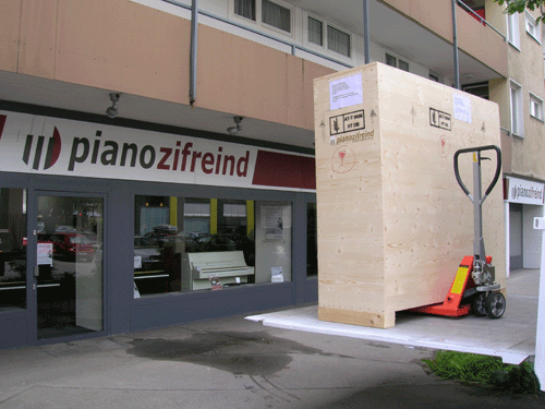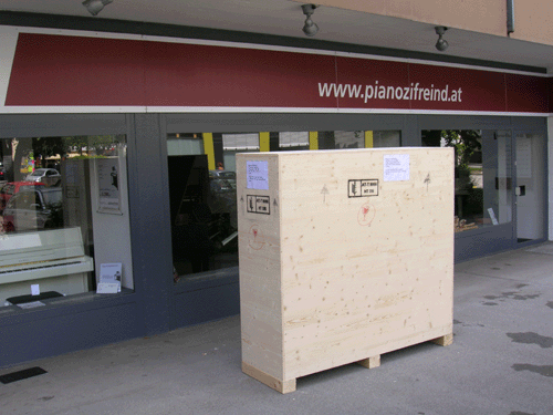Gut ausgepolstert für einen sicheren Transport des Bösendorfers